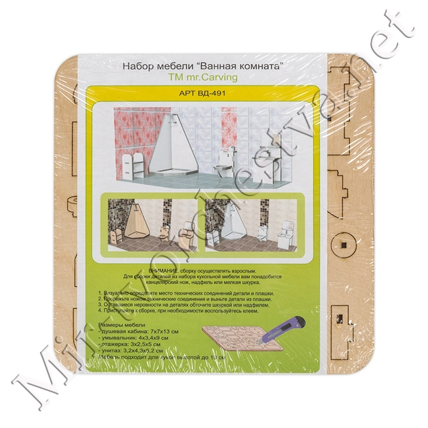 Заготовка для декорирования ВД-491 Набор мебели и аксессуаров фанера "Ванная комната, 4 предмета", Mr. Carving