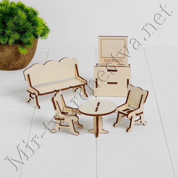 Заготовка для декорирования ВД-492 Набор мебели и аксессуаров "Гостиная, 6 предметов" фанера, Mr. Carving
