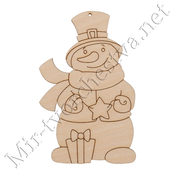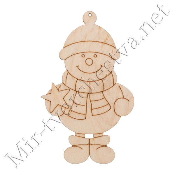 Заготовка для декорирования ВД-1038 Подвеска "Снеговичок" фанера 9x5.5x0.3 см 0.3 см, Mr. Carving