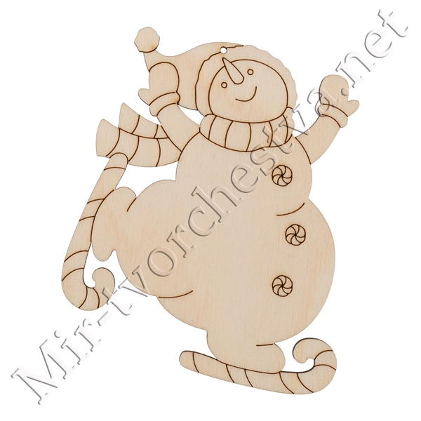 Заготовка для декорирования ВД-1050 Веселый снеговик сосна 15x8.5x1.3 см 0.3 см, Mr. Carving