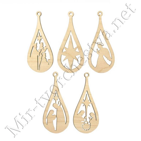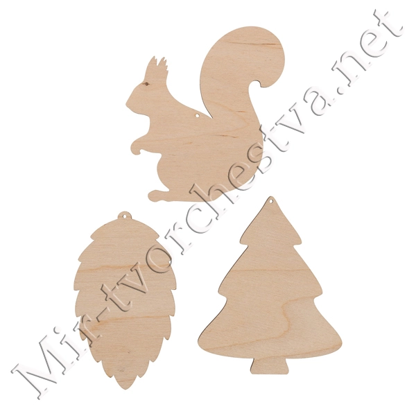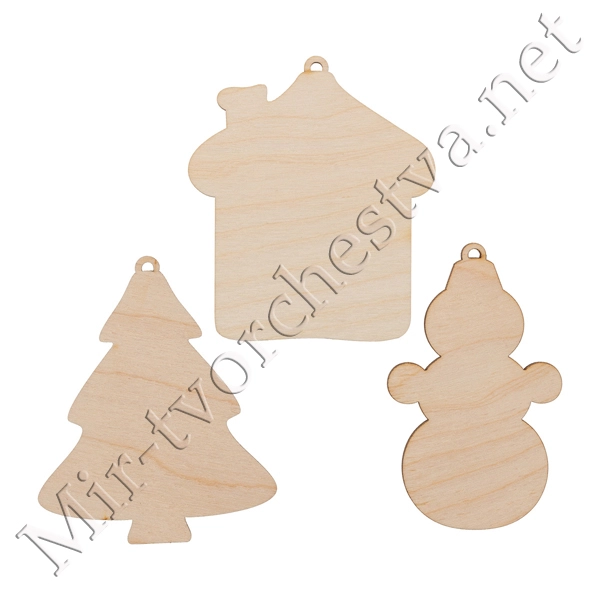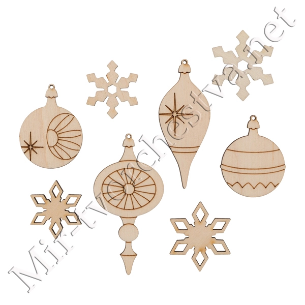 Заготовка для декорирования ВД-1044 Набор елочных подвесок №3 фанера 9x8x0.3 см 0.3 см, Mr. Carving