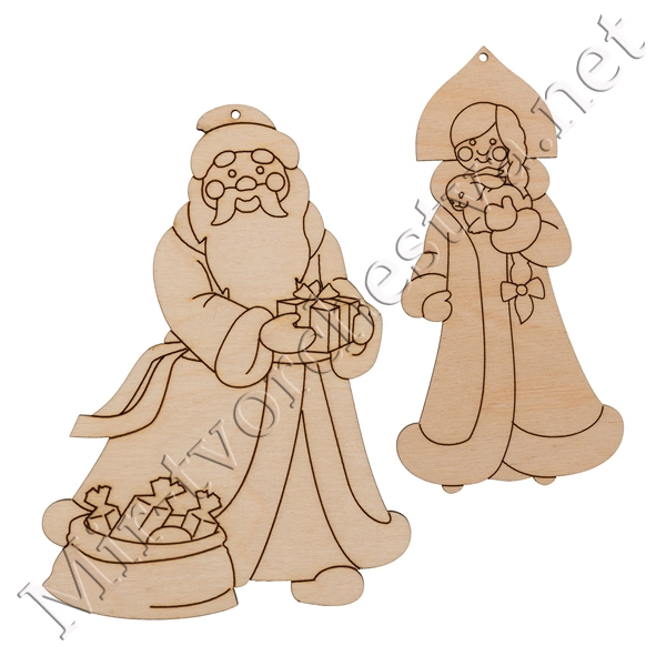 Заготовка для декорирования ВД-1006 Набор "Дедушка мороз со Снегурочкой" фанера 12x6.2x0.3 см 0.3 см, Mr. Carving