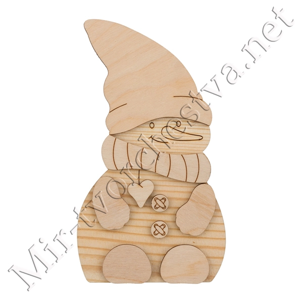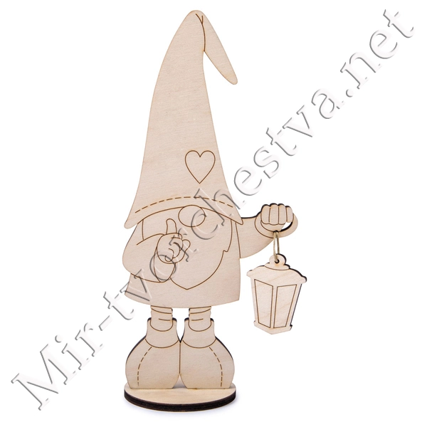 Заготовка для декорирования ВД-1126 (НГ) Гном на подставке фанера №2, 9x4x0.4см 0.4см, Mr. Carving