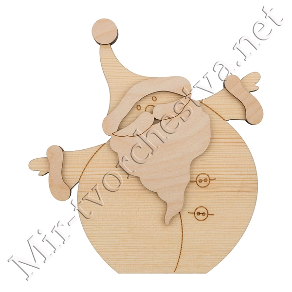 Заготовка для декорирования ВД-1051 Веселый Дед Мороз сосна 16.5x18x1.3 см 0.3 см, Mr. Carving