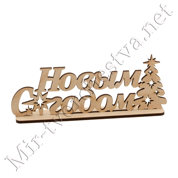 Заготовка для декорирования ВД-1127 Надпись на подставке "С Новым Годом" фанера 3.5x15x0.4 см 0.4 см, Mr. Carving