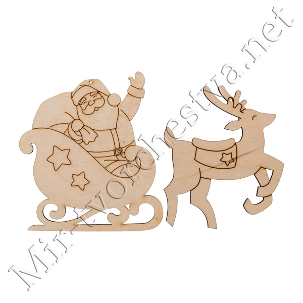Заготовка для декорирования ВД-1005 Набор подвесок "Санта с оленем" фанера 10x9x0.4 см 0.4 см, Mr. Carving