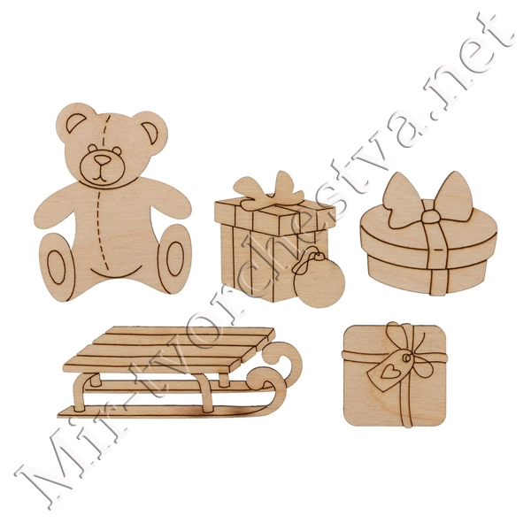Заготовка для декорирования ВД-1030 Мини набор фанера 5x6x0.3 см 0.3 см "Новогодний", Mr. Carving