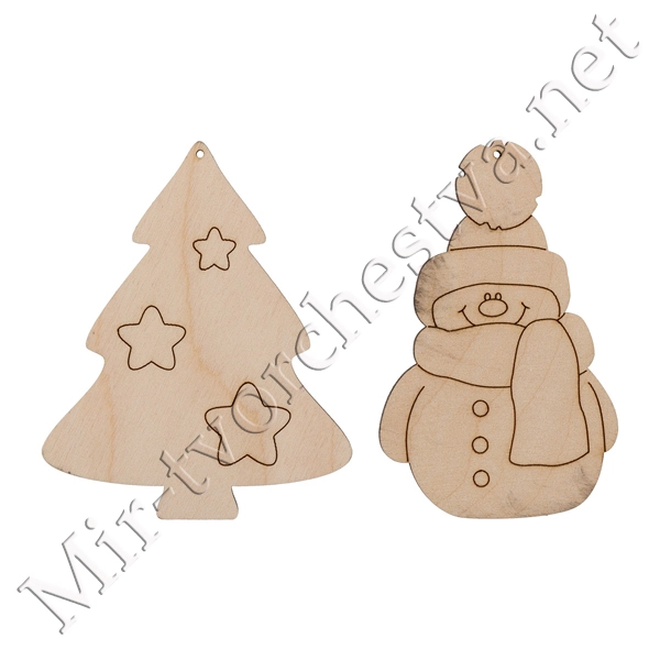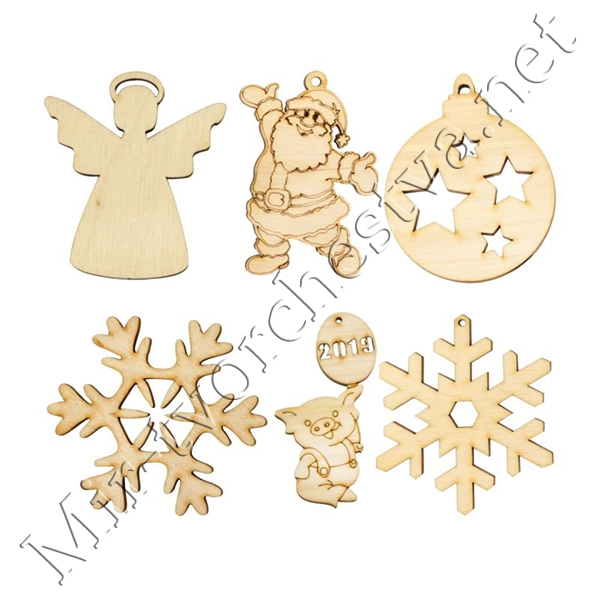 Заготовка для декорирования ВД-1043 Набор елочных подвесок фанера 9.5x7.8x0.3 см 0.3 см №1, Mr. Carving