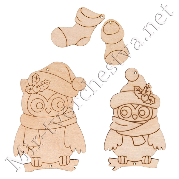 Заготовка для декорирования ВД-1123 Набор "Новогодние Совы" фанера 9.5x6.5x0.3 см 0.3 см, Mr. Carving