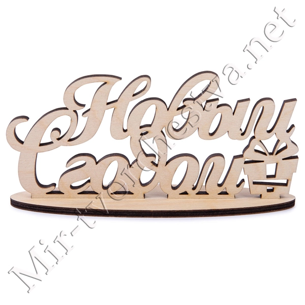 Заготовка для декорирования ВД-1017 Надпись на подставке "С Новым Годом!" фанера 8x20x3 см 0.4 см, Mr. Carving