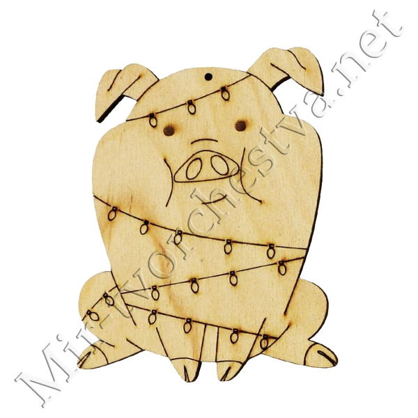 Заготовка „Свинка в гирлянде“, фанера, 7,9х10,0см, ROSA TALENT