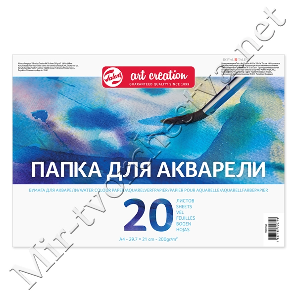 Альбом для акварели 200гр/м.кв А4 20л спираль по 1 стороне, Art Creation