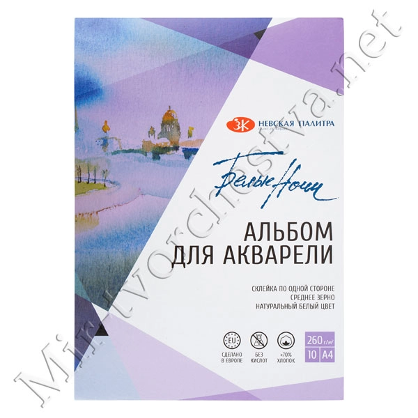 Альбом-склейка для акварели, А4, 280г/м2, 15 листов, 100% целлюлоза, среднее зерно, (en), Белые Ночи