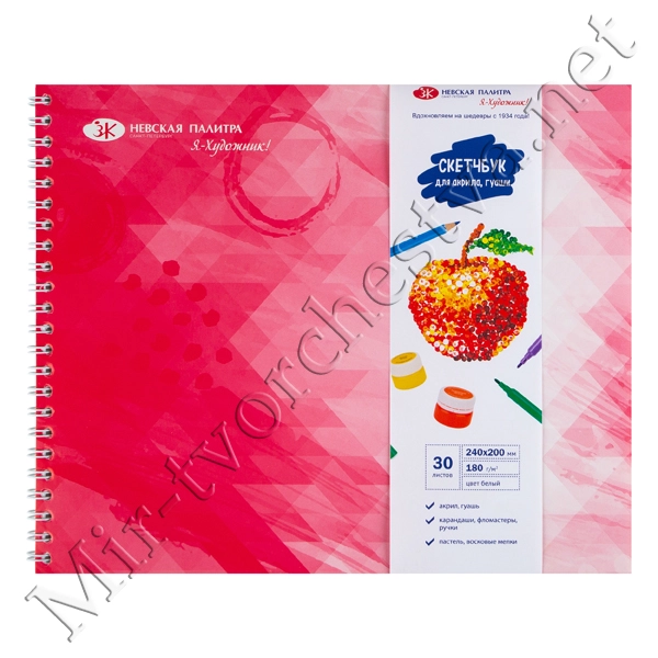 Скетчбук на пружине, 180 г/м2, 250x200 мм, 30 л, офсет, обечайка, подложка, Я-Художник!