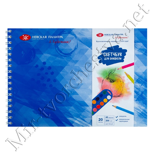 Скетчбук для акварели на пружине, 200 г/м2, А5, 20 л, бумага акварельная ГОЗНАК, обечайка, подложка, Я-Художник!