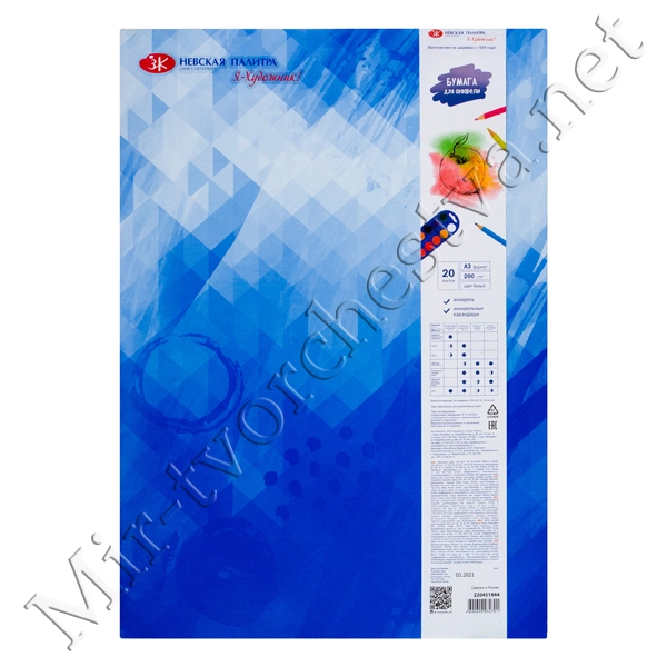 Бумага для акварели в папке, 200 г/м2, А3, 20 л., Я-Художник!