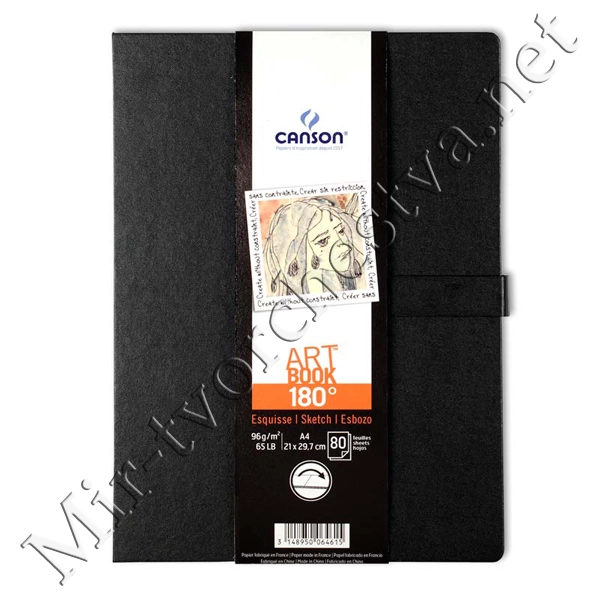 Блокнот для графики 96г черн.обл.книжн.форм.магнит.застежка "180*" "CANSON®" 80л 21х29,7см