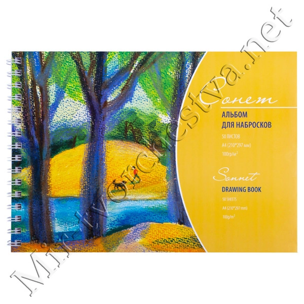 Альбом для набросков А4 на спирали, 50 листов, 100 г/м², Сонет