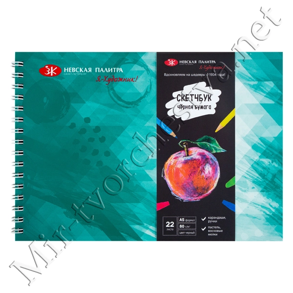 Скетчбук на пружине, 80 г/м2, А5, 22 л, бумага чёрная, обечайка, Я-Художник