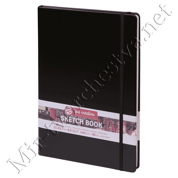 Блокнот для зарисовок 140г/кв.м 21*29.7см 80л твердая обложка черный, Art Creation