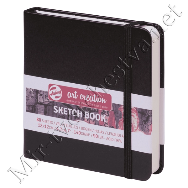 Блокнот для зарисовок 140г/кв.м 12*12см 80л твердая обложка черный, Art Creation