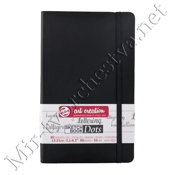 Блокнот для зарисовок 80г/кв.м 13*21см 80л в точку обложка черная, Art Creation