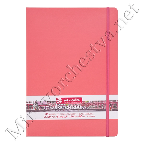 Блокнот для зарисовок 140г/кв.м 21*29.7см 80л твердая обложка коралловая, Art Creation