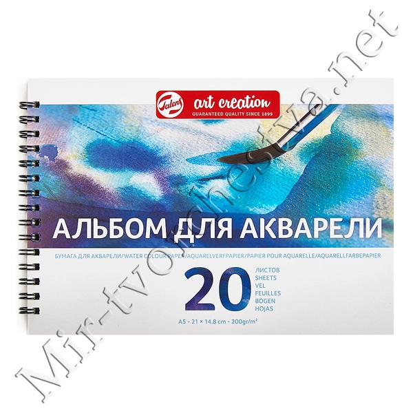 Альбом для акварели 200гр/м.кв А5 20л спираль по 1 стороне, Art Creation