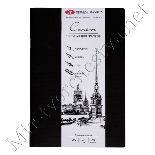 Альбом-склейка для акварели, А4, 280г/м2, 15 листов, 100% целлюлоза, среднее зерно, (ru), Белые Ночи