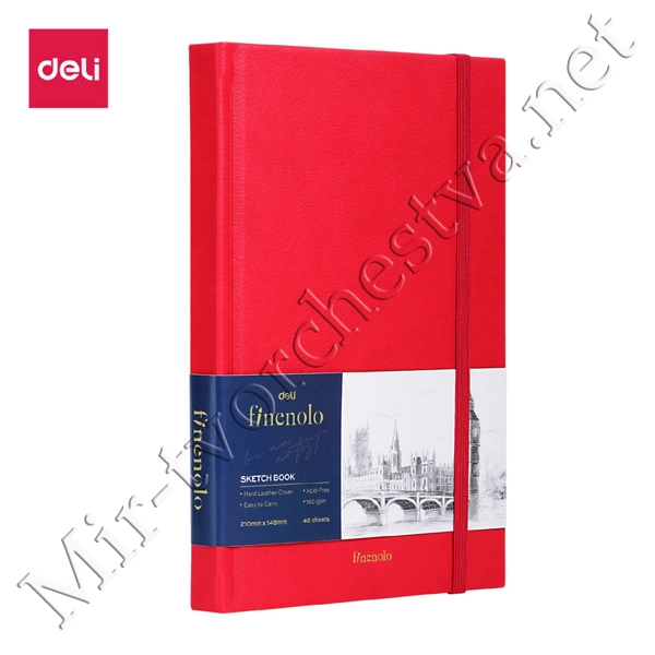 Блокнот для зарисовок 160г/кв.м 14,8*21см 40л твердая обложка красный, Finenolo