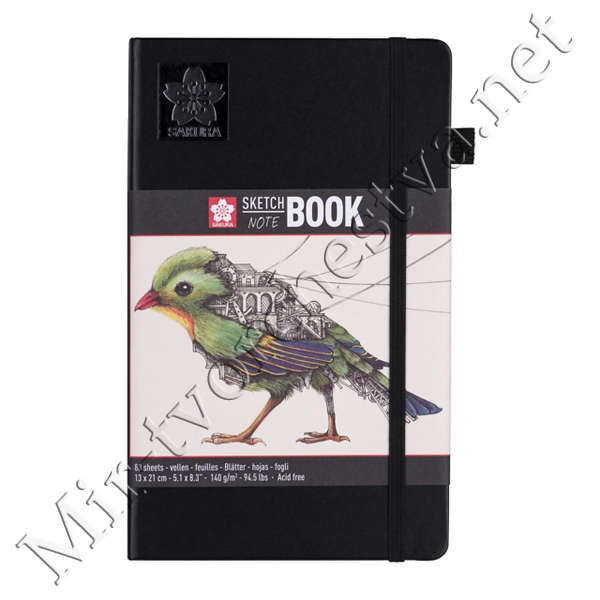 Блокнот для зарисовок 140г/кв.м 13*21см 80л твердая обложка черный, Sakura