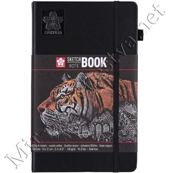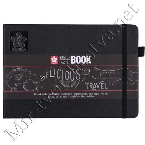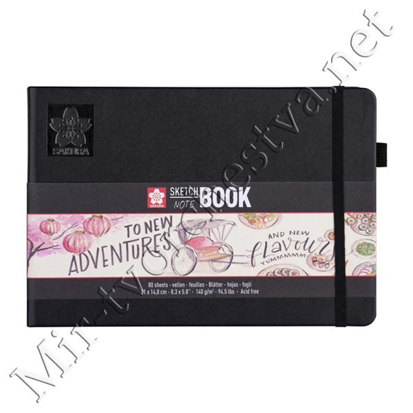 Блокнот для зарисовок 140г/кв.м 21*14.8см 80л твердая обложка черный пейзаж, Sakura