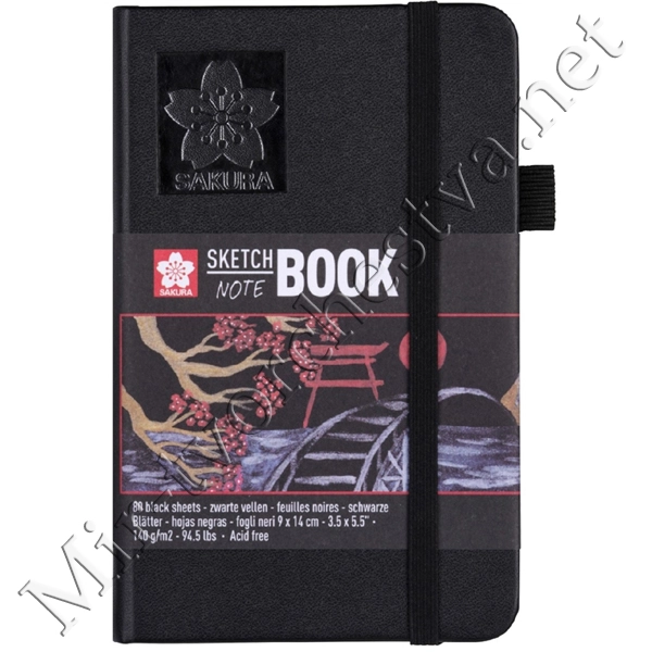 Блокнот для зарисовок 140г/кв.м 9*14см 80л черная бумага твердая обложка черный, Sakura