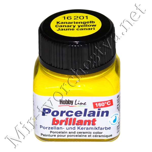 Краска по фарфору и керамике на водн.осн.(обжиг160*С) Hobby Line 20мл КАНАРЕЕЧНО ЖЁЛТЫЙ .