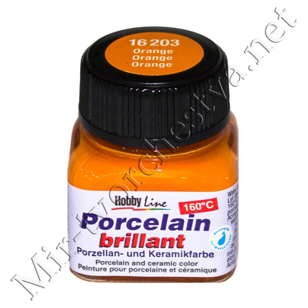 Краска по фарфору и керамике на водн.осн.(обжиг160*С) Hobby Line 20мл ОРАНЖЕВЫЙ