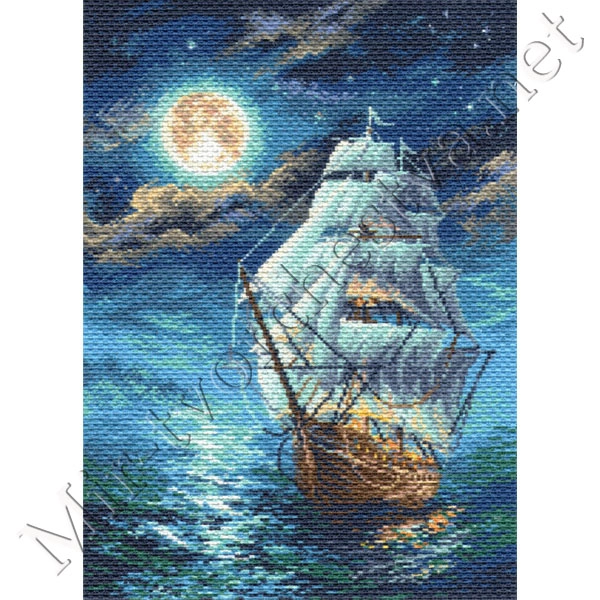 Рисунок на канве 37x49см Ночной морской пейзаж