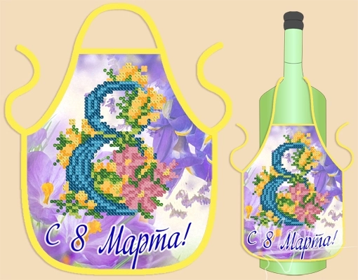 Фартук на бутылку, С 8 марта, 14х16см, ФБ-026