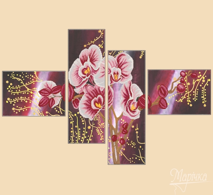 Модульная картина, Дикая орхидея (4 части), 2ч-28х20см, 2-16х51см, РКП-1007