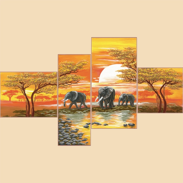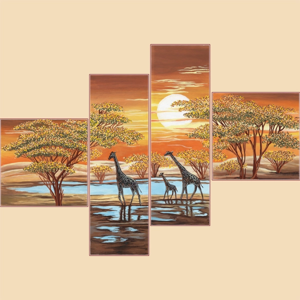 Модульная картина, Закат в саванне (4 части), 28х32см, 18х51см, 25х51см, 25х25см, РКП-1011