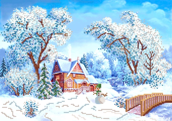Картина, Зимняя избушка, 26х29см, РКП-379