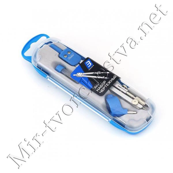 Готовальня 2предм. (циркуль, грифели) в футляре, Голубой, Mazari