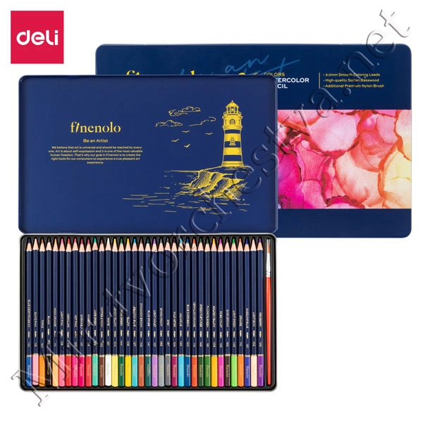 Набор акварельных карандашей 36 цветов в металлическом пенале, Finenolo