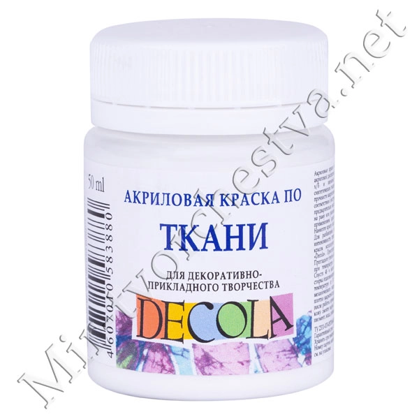 Краска акриловая по ткани, Белая, 50мл, Decola