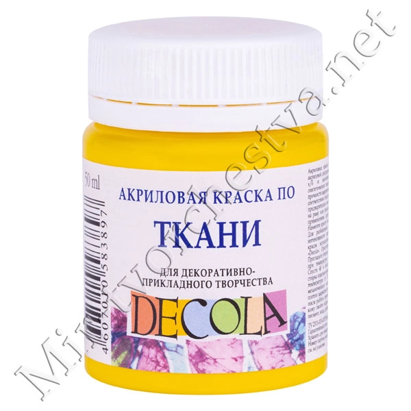 Краска акриловая по ткани, Желтая средняя, 50мл, Decola
