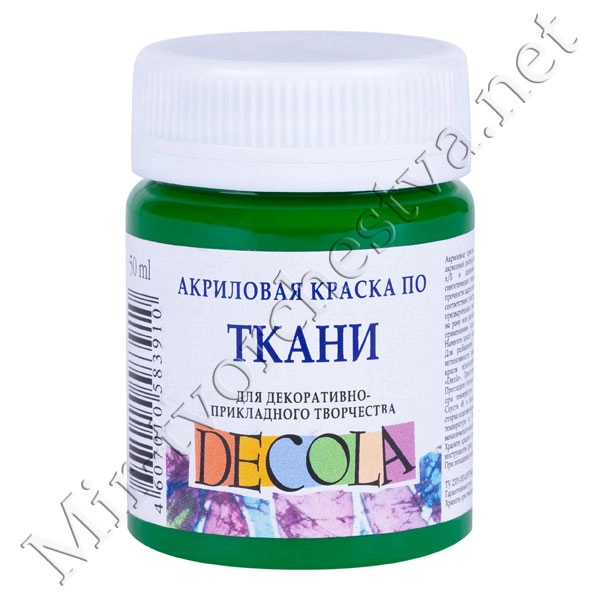 Краска акриловая по ткани, Зеленая средняя, 50мл, Decola