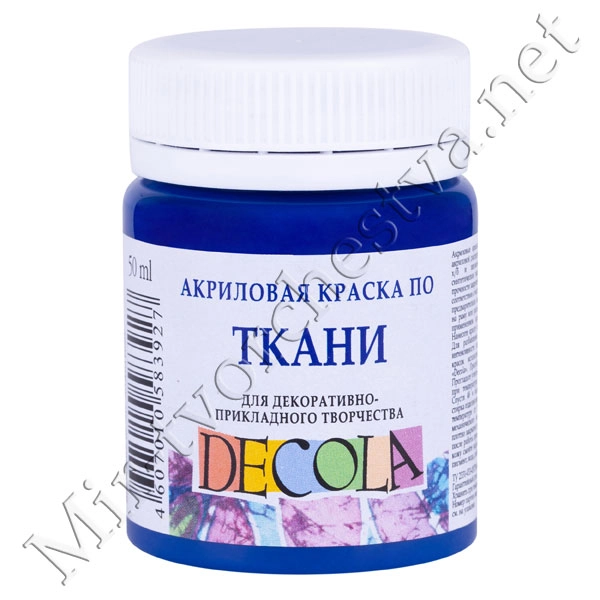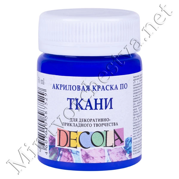 Краска акриловая по ткани, Ультрамарин, 50мл, Decola