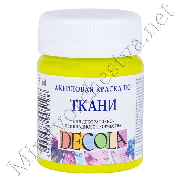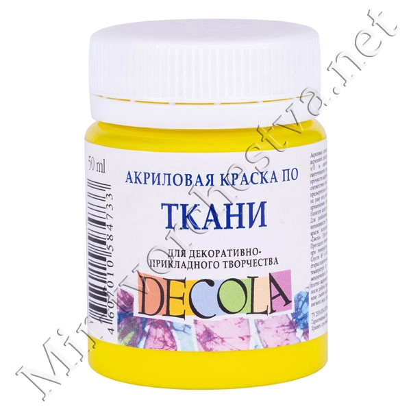 Краска акриловая по ткани, Лимонная, 50мл, Decola
