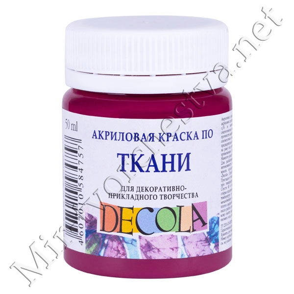 Краска акриловая по ткани, Карминовая, 50мл, Decola