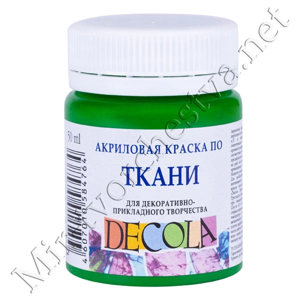 Краска акриловая по ткани, Зеленая светлая, 50мл, Decola