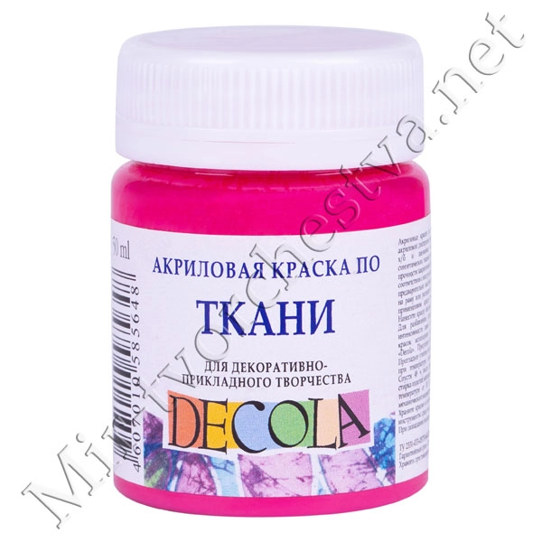 Краска акриловая по ткани, Фуксия, 50мл, Decola